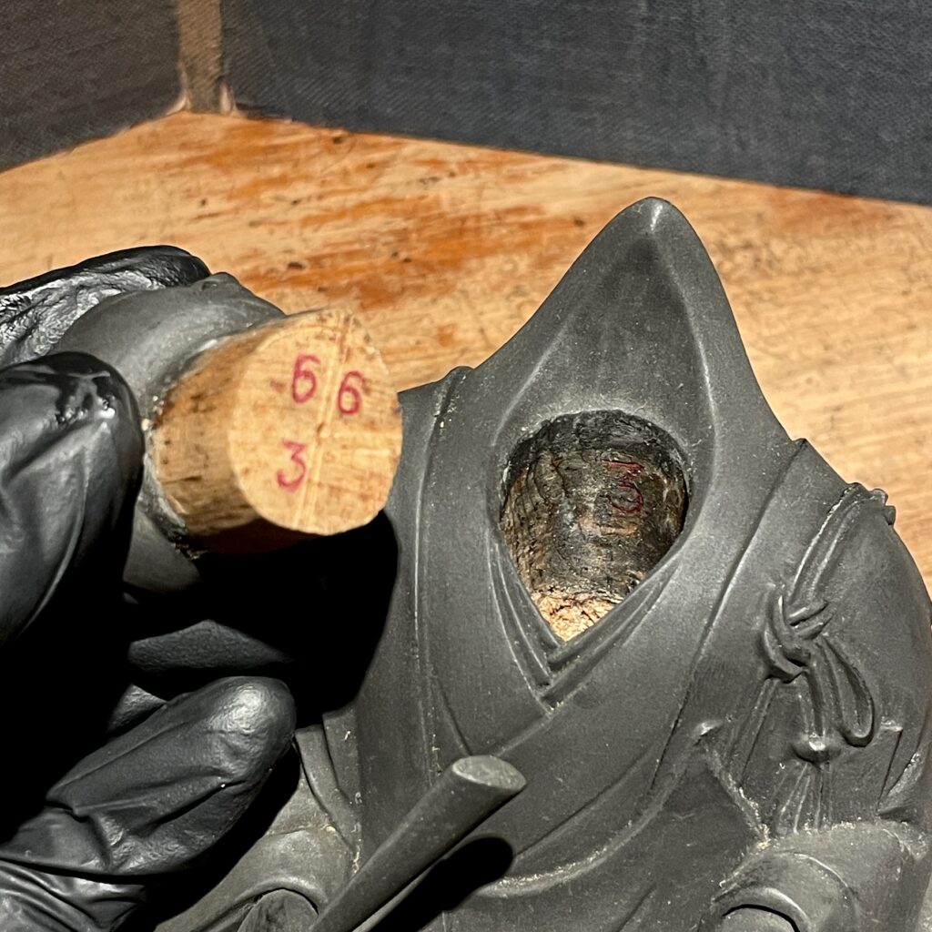 背面部に朱字で「日象勤奉開眼」の朱字の書入があります